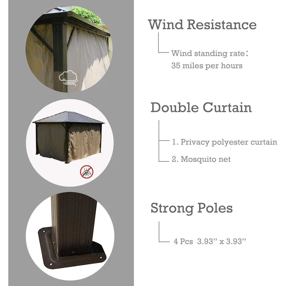 10'x12' Hardtop Gazebo,with with 2-Layer Sidewalls Curtains for Patio, Backyard, Permanent Metal Pavilion