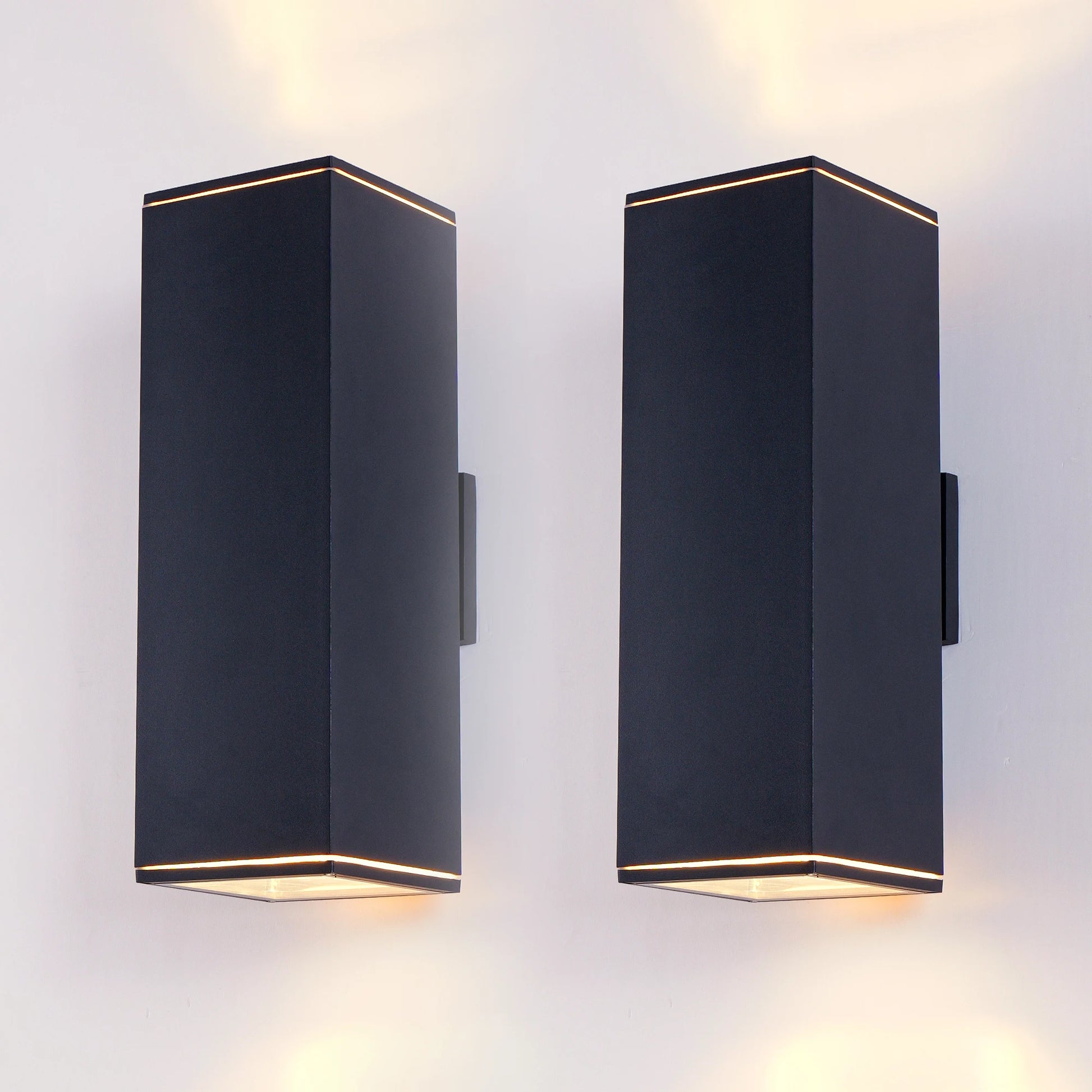 2 pack led wall light outdoor sconce modern black up down porch mount fixture ul