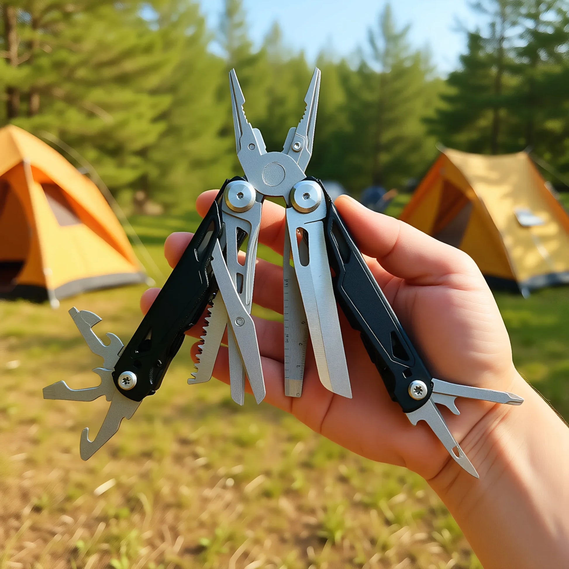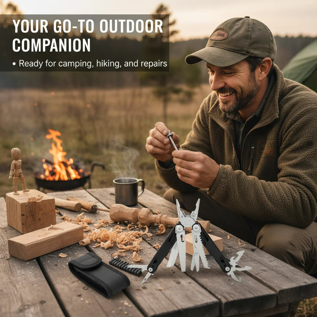 27 in 1 Multitool Pliers - Stainless Steel Survival Tool with Screwdriver/Saw/Spring Scissors for Camping, Fishing, Hiking (Nylo