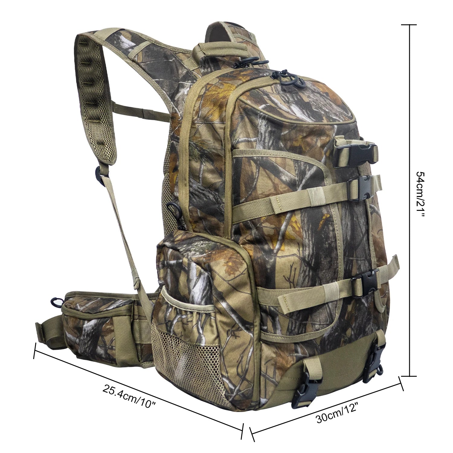 35L Lightweight Hunting Backpack with Gun And Bow Storage Side Mesh Pouch And Waist Bag Design for Outdoor Activities
