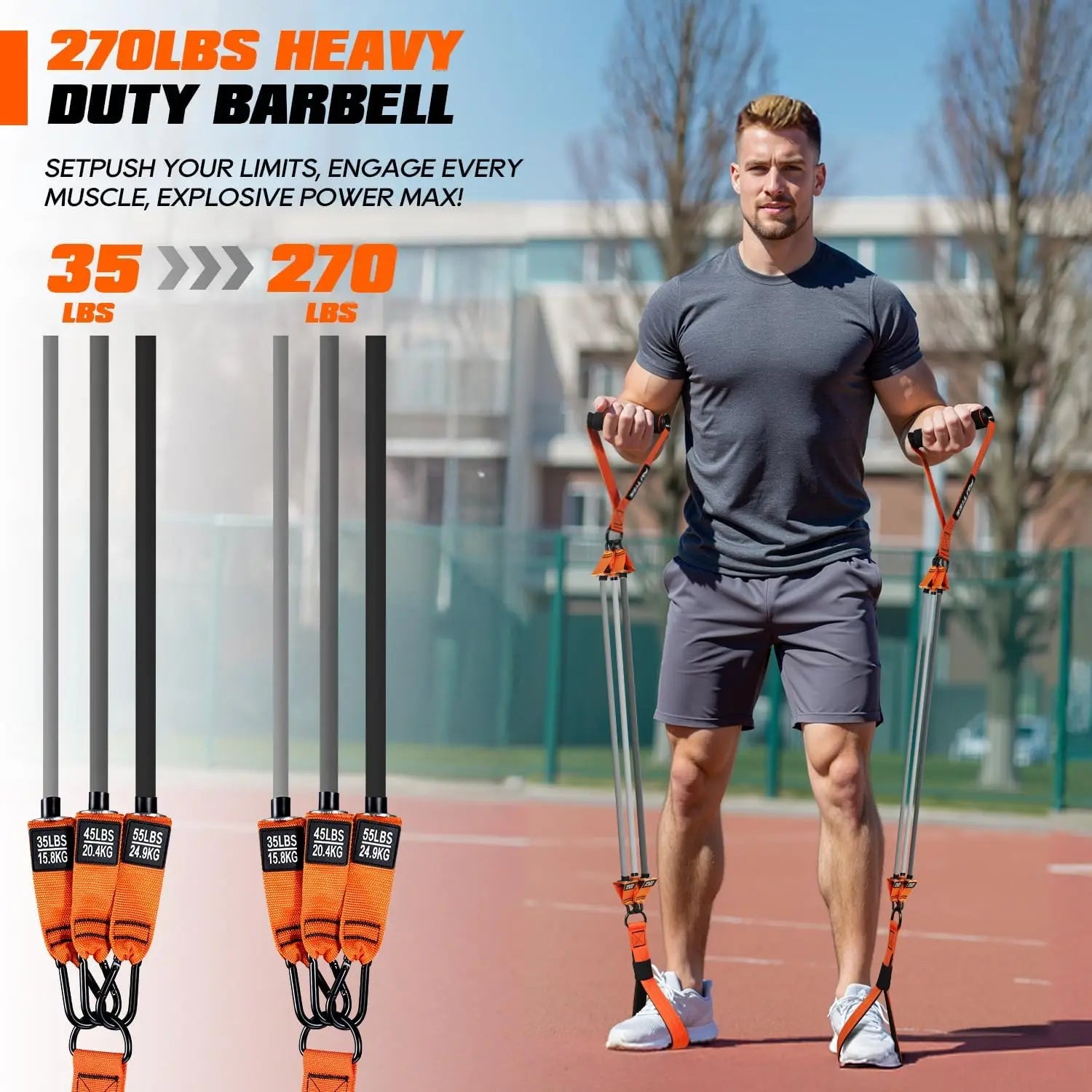 【High Resistance Training】This Pilates bar kit includes 6 exercise bands with up to 270lb resistance, made from durable natural latex for elasticity and tear resistance. Suitable for all fitness levels, from beginners to advanced users, it adapts to your strength needs. 【Complete Home Gym Set】Enjoy a comprehensive workout with this kit: features a multifunctional Pilates bar, non-slip foot straps, exercise handles, ankle straps, door anchors, an exercise guide, and a storage bag. Multiple combinations allow for professional exercises at home without bulky equipment. 【Durable and Comfortable Design】Crafted with three steel pipes wrapped in a soft 5mm foam pad for a comfortable grip that prevents slipping during intense workouts. The high-quality materials ensure long-lasting use and support through repeated sessions. 【Versatile Exercise Options】Perfect for full-body training: target legs, hips, back, arms, abs, chest, and shoulders. Use it for squats, stretches, or as a warm-up before weightlifting. Easily attach to chairs or doors for varied routines in any room. 【Portable and Easy Assembly】Quickly assemble and disassemble the Pilates bar with three ring threads; adjustable straps allow for easy length customization. Comes with a portable bag for convenient storage and transport—ideal for home use or on-the-go fitness. 【Effective Fitness Results】Enhance muscle strength, endurance, and explosive power with this heavy-duty alternative to dumbbells and barbells. Regular use can improve body lines and overall energy levels in just 30 minutes daily. 【Reliable Quality Assurance】Each product is carefully inspected to meet high standards for durability and performance. We are committed to providing you with a top-notch fitness experience that supports your health goals.