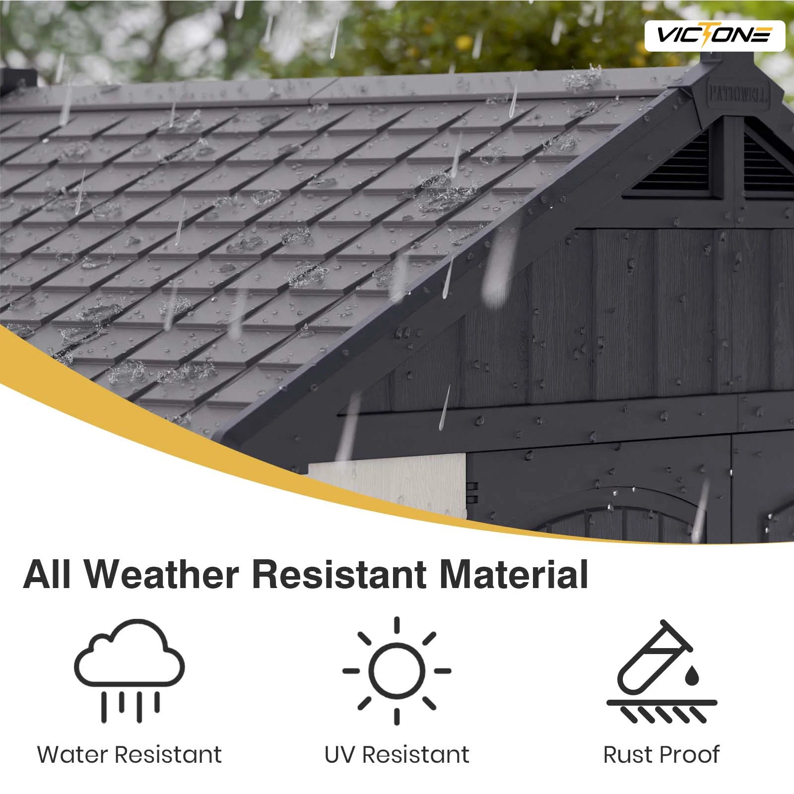 【Recyclable And Durable Material】Made from recyclable materials, this storage shed is designed to be both lightweight and durable. Beige wall and gray roof are more beautiful and fashionable.